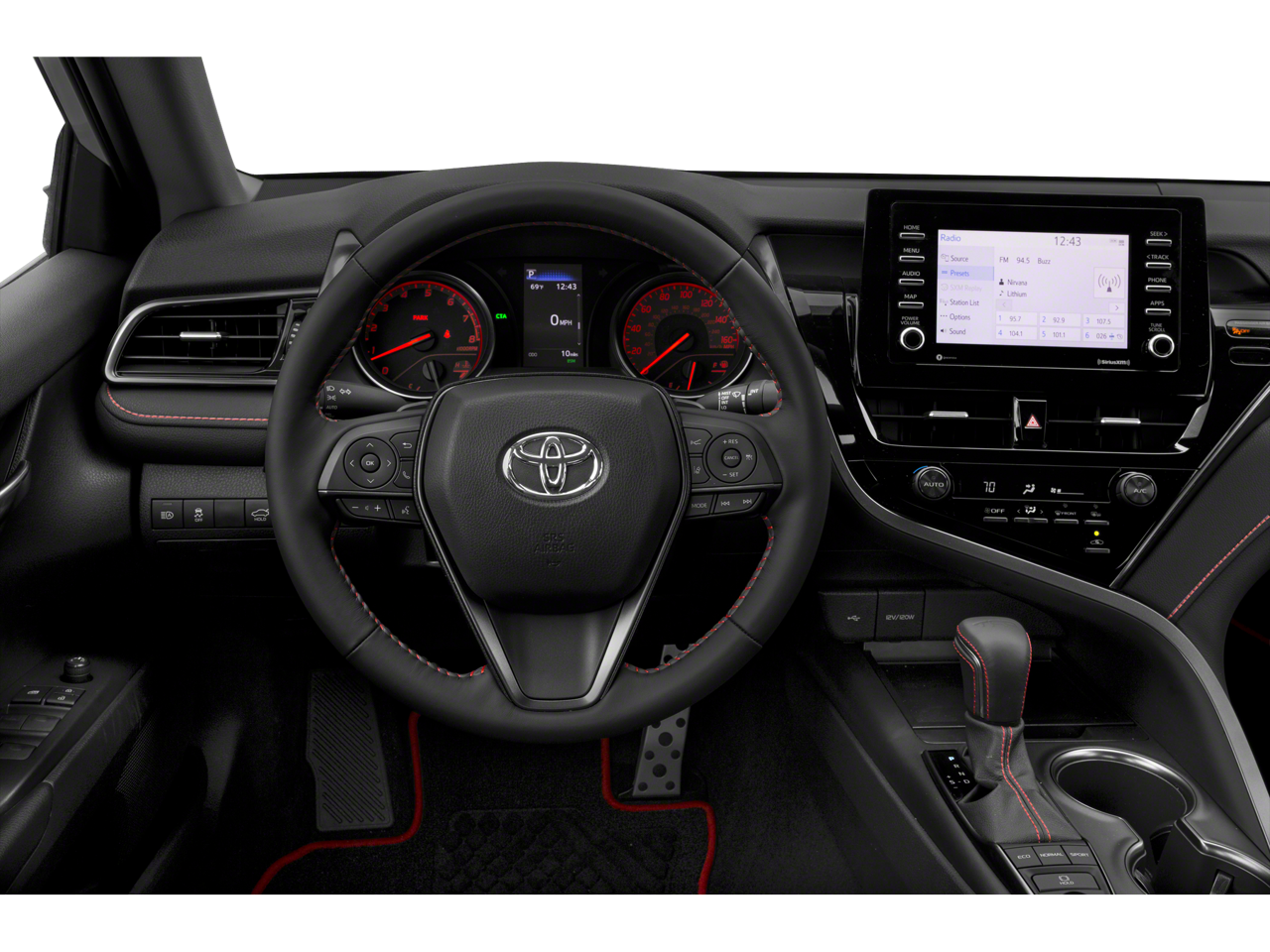 - Fabric Seat Trim w/Sport SofTex -inc: TRD red stitching and TRD logo on headrest