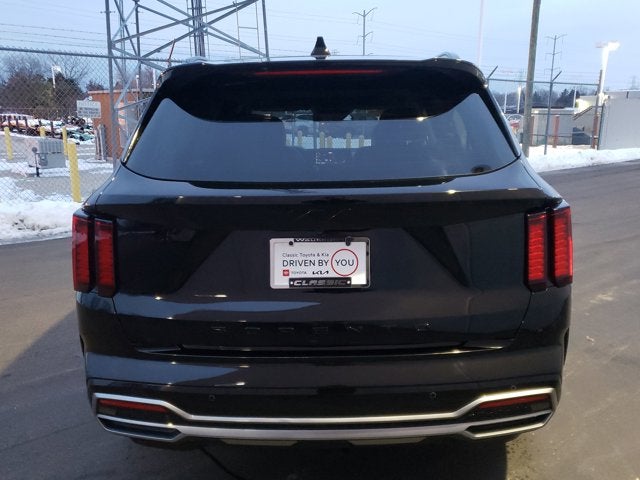 Ebony Black 2022 Kia Sorento EX FWD 8-Speed DCT 2.5L I4 DGI Turbocharged DOHC 16V LEV3-ULEV70 281hp 3rd row seats: split-bench, 4-Wheel Disc Brakes, 6 Speakers, ABS brakes, Air Conditioning, Alloy wheels, AM/FM radio: SiriusXM, Apple CarPlay & Android Auto, Auto High-beam Headlights, Automatic temperature control, Brake assist, Bumpers: body-color, Delay-off headlights, Driver door bin, Driver vanity mirror, Dual front impact airbags, Dual front side impact airbags, Electronic Stability Control, Emergency communication system: UVO Link, Exterior Parking Camera Rear, Four wheel independent suspension, Front anti-roll bar, Front Bucket Seats, Front Center Armrest, Front dual zone A/C, Front fog lights, Front reading lights, Fully automatic headlights, Heated door mirrors, Heated Front Bucket Seats, Heated front seats, Illuminated entry, Knee airbag, Leather Shift Knob, Leather steering wheel, LED Interior Lighting, Low tire pressure warning, Navigation System, Occupant sensing airbag, Outside temperature display, Overhead airbag, Overhead console, Panic alarm, Panoramic Sunroof Package, Passenger door bin, Passenger vanity mirror, Power door mirrors, Power driver seat, Power Liftgate, Power steering, Power Sunroof w/Power Sunshade, Power windows, Radio data system, Radio: AM/FM Audio System, Rear air conditioning, Rear anti-roll bar, Rear reading lights, Rear window defroster, Rear window wiper, Remote keyless entry, Roof rack: rails only, Security system, Smart Key w/ Push Button and Remote Start, Speed control, Speed-sensing steering, Split folding rear seat, Spoiler, Steering wheel mounted audio controls, SynTex Artificial Leather Seat Trim, Tachometer, Telescoping steering wheel, Tilt steering wheel, Traction control, Trip computer, Turn signal indicator mirrors, Variably intermittent wipers. 22/29 City/Highway MPG Visit Classic today! Every Day, Everything We Do, Is Driven By You!
