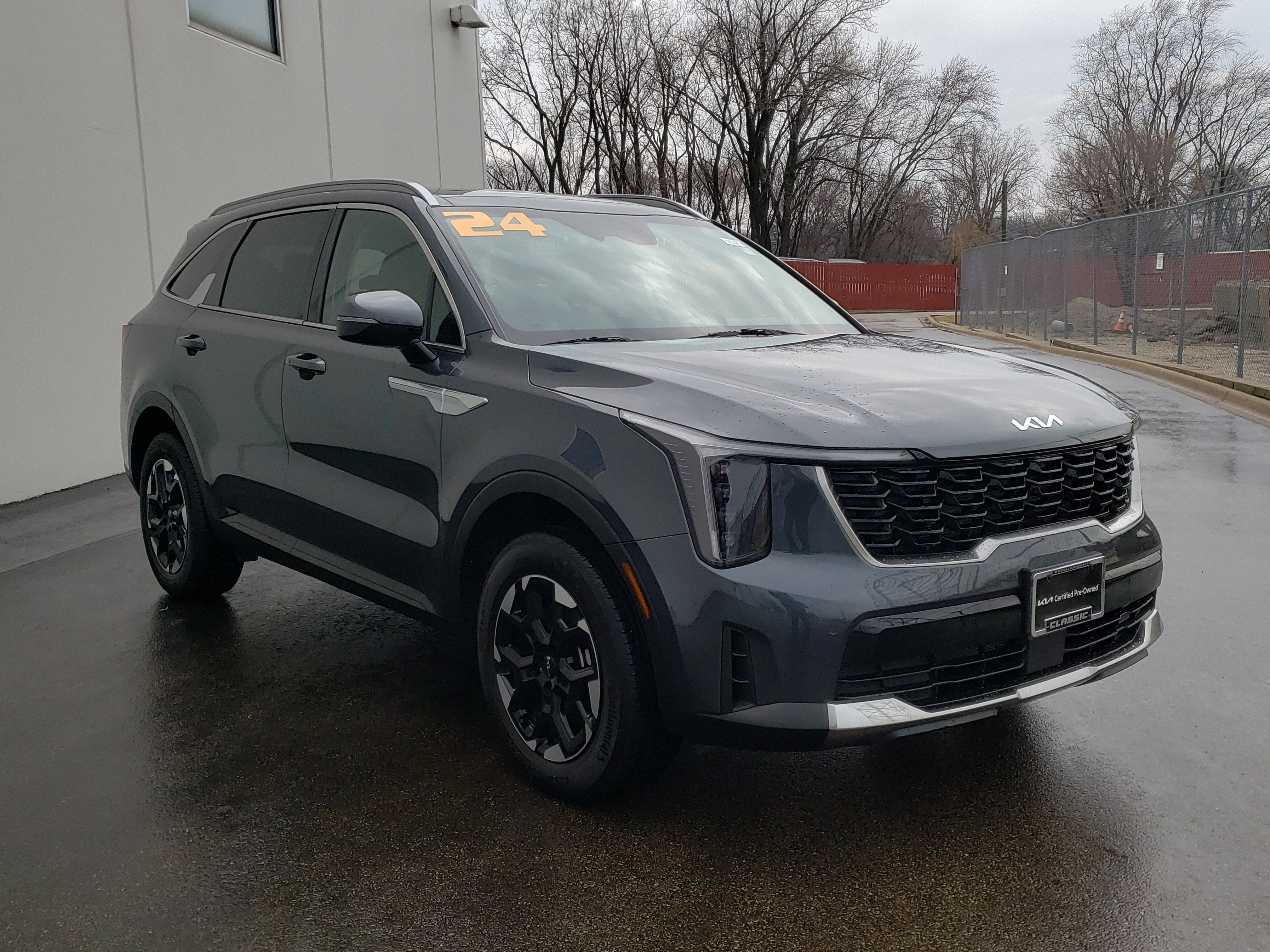 Gravity Gray 2024 Kia Sorento S AWD 8-Speed Automatic 2.5L I4 DGI DOHC 16V LEV3-SULEV30 191hp AWD, 3rd row seats: split-bench, 4-Wheel Disc Brakes, 6 Speakers, ABS brakes, Air Conditioning, Alloy wheels, AM/FM radio: SiriusXM, Apple CarPlay & Android Auto, Auto High-beam Headlights, Automatic temperature control, Brake assist, Bumpers: body-color, Carpeted Floor Mats, Delay-off headlights, Driver door bin, Driver vanity mirror, Dual front impact airbags, Dual front side impact airbags, Electronic Stability Control, Emergency communication system: 911 Connect, Exterior Parking Camera Rear, Four wheel independent suspension, Front anti-roll bar, Front Bucket Seats, Front Center Armrest, Front dual zone A/C, Front fog lights, Front reading lights, Fully automatic headlights, Heated door mirrors, Heated Front Bucket Seats, Heated front seats, Illuminated entry, Knee airbag, Leather Shift Knob, Leather steering wheel, LED Interior Lighting, Low tire pressure warning, Navigation System, Occupant sensing airbag, Outside temperature display, Overhead airbag, Overhead console, Panic alarm, Panoramic Power Sunroof w/Power Sunshade, Panoramic Sunroof Package, Passenger door bin, Passenger vanity mirror, Power door mirrors, Power driver seat, Power steering, Power windows, Radio data system, Radio: AM/FM Audio System, Rear anti-roll bar, Rear reading lights, Rear seat center armrest, Rear side impact airbag, Rear window defroster, Rear window wiper, Remote keyless entry, Security system, Smart Key w/ Push Button and Remote Start, Speed control, Speed-sensing steering, Split folding rear seat, Spoiler, Steering wheel mounted audio controls, SynTex Artificial Leather Seat Trim, Tachometer, Telescoping steering wheel, Tilt steering wheel, Traction control, Trip computer, Turn signal indicator mirrors, Variably intermittent wipers, Wheels: 7.5J x 18 Alloy w/Machine Finish.Recent Arrival! Odometer is 20341 miles below market average! 23/28 City/Highway MPGVisit Classic today! Every Day, Everything We Do, Is Driven By You!